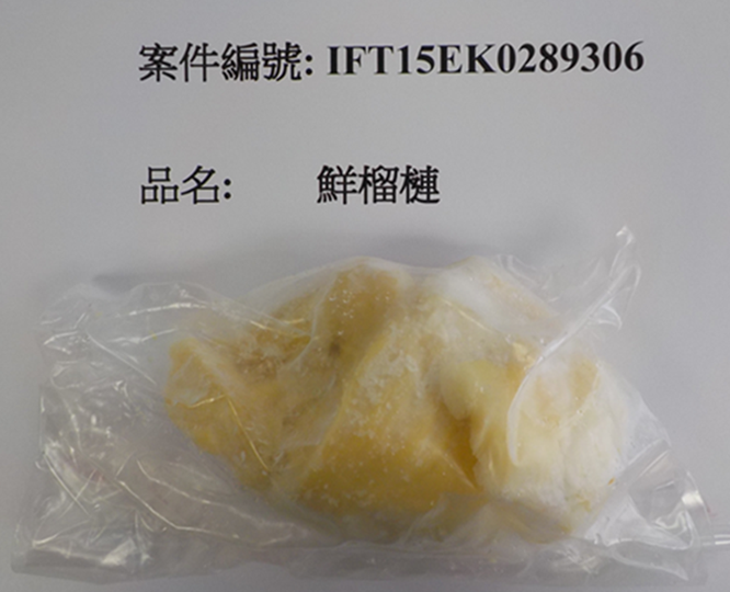 (Một lô sầu riêng tươi của Việt Nam xuất khẩu vào Đài Loan có hàm lượng Metalaxyl vượt mức cho phép. Nguồn: TFDA)