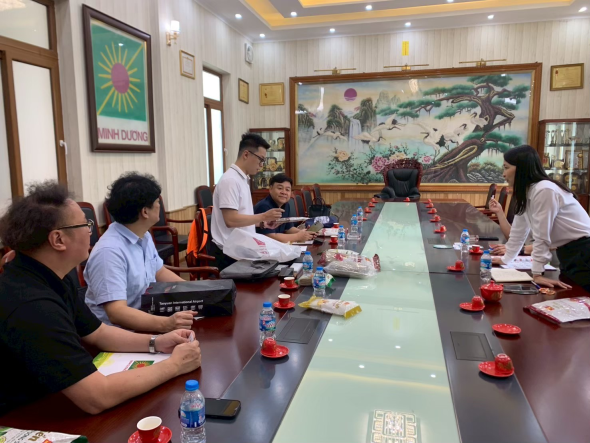 (Một buổi B2B matching giữa nhà nhập khẩu Đài Loan đang làm việc với Công ty cổ phần thực phẩm Minh Dương do Thương vụ tổ chức)